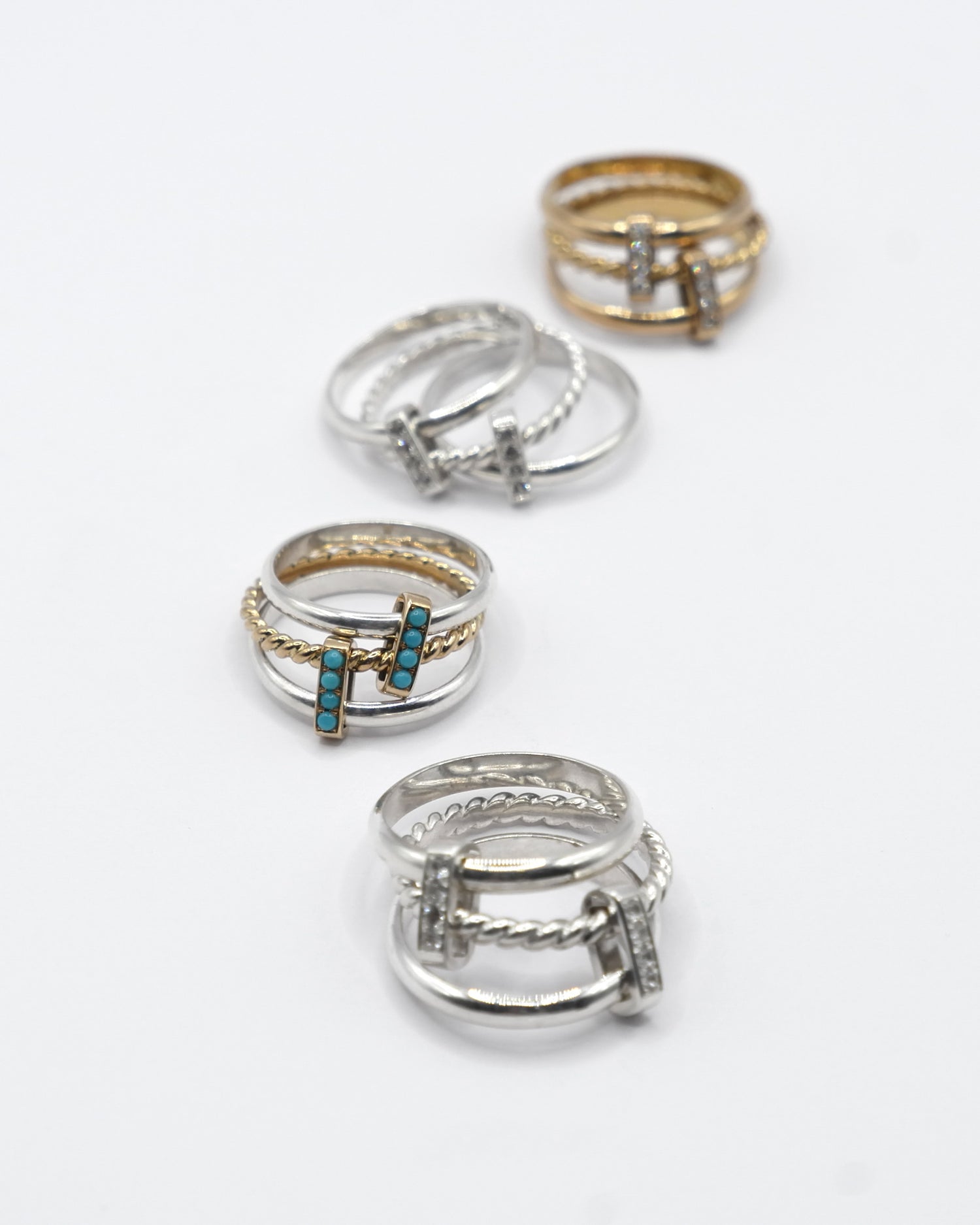 BAGUE LASSO - Or jaune, Argent, Turquoises