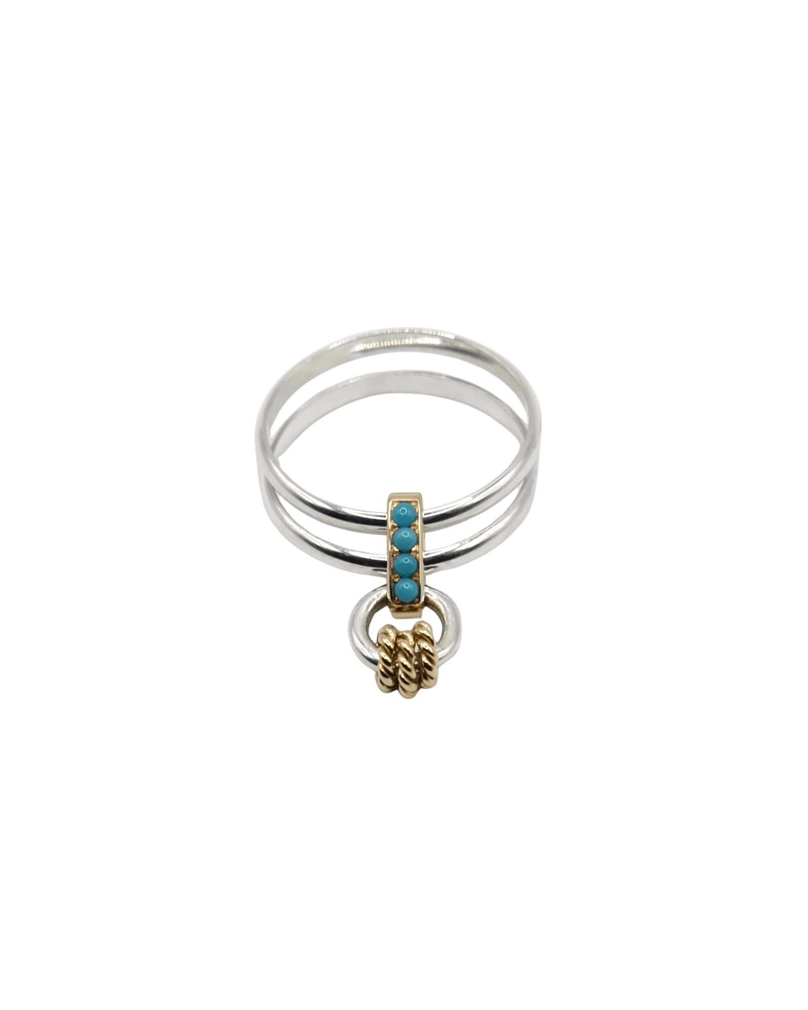 BAGUE SEDONA, Or jaune, Argent, Turquoises